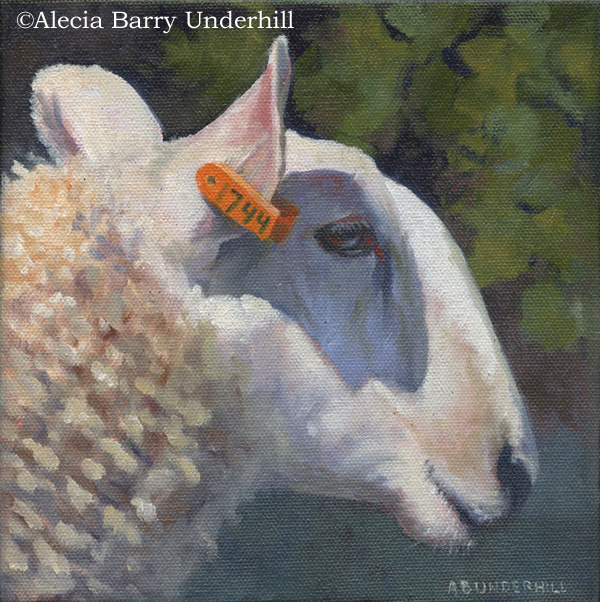 Black Sheep Nibbling by Alecia Barry Underhill. 12×12″ oil on gallery wrap canvas. $500.00