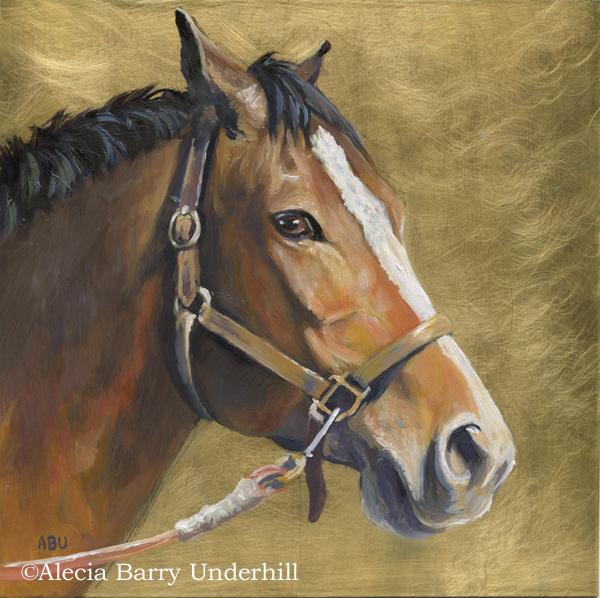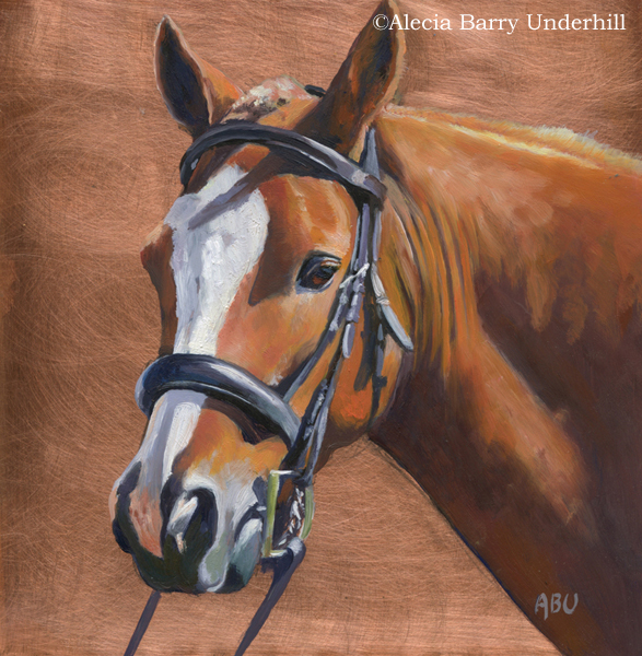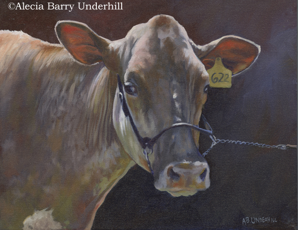 Brown Swiss by Alecia Barry Underhill. Framed 12×12″ oil on canvas. $600.00