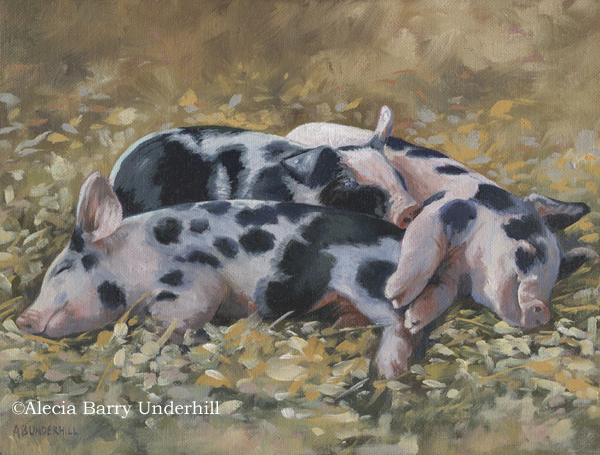 Stare Down by Alecia Barry Underhill. Framed 6×8″ oil on panel. $200.00