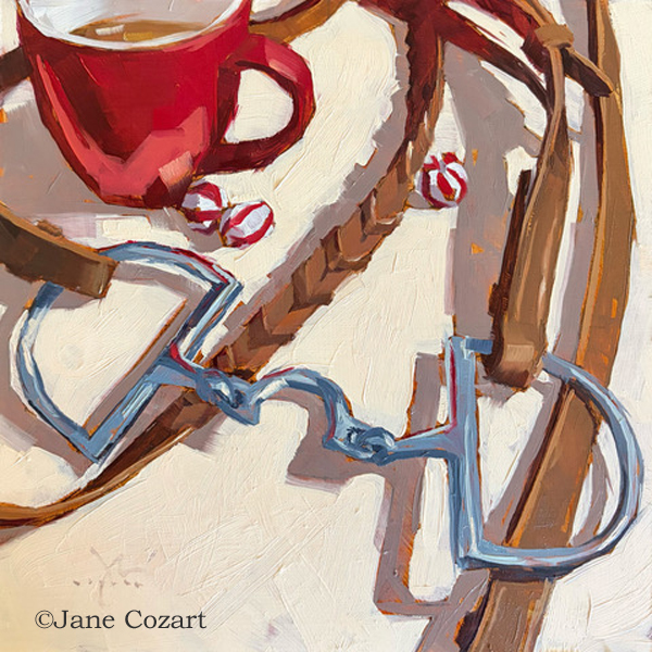 Jane Cozart Red Cup, Bit and Peppermints by Jane Cozart. Framed 8×8″ oil on panel. $195.00 3 Ring and Peppermints by Jane Cozart. Framed 8×8″ oil on panel. $195.00