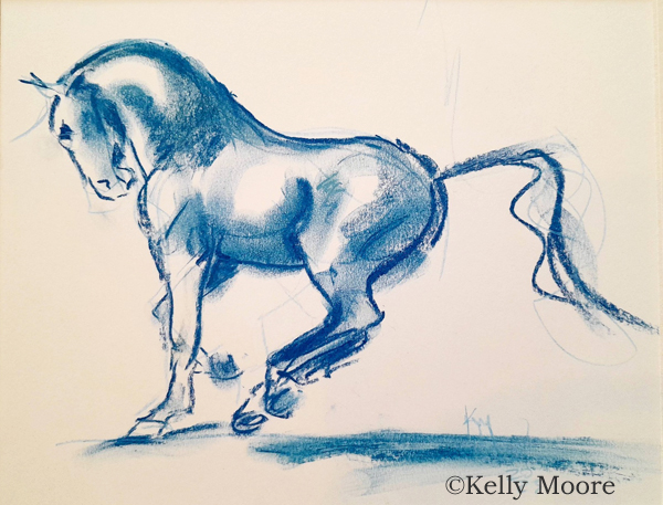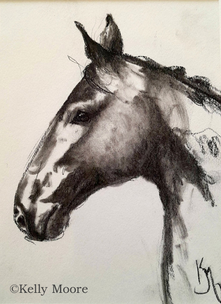 Harness Mare by Kelly Moore. Matted 6×8″ charcoal on paper. $75.00