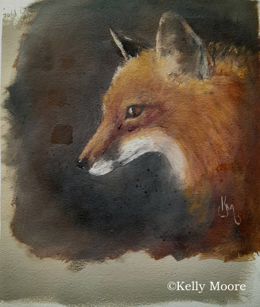 Fox Study by Kelly Moore. 7 1/2 × 9″ acrylic on paper. $75.00