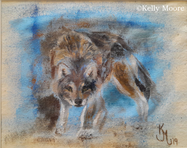 Grey Wolf Study by Kelly Moore. Matted 8×10″ acrylic on canvas. $95.00