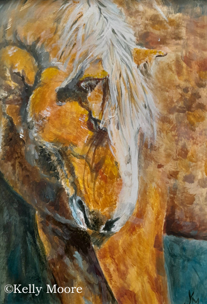 Stallion in the Barnyard by Kelly Moore. Unframed 5×7″ acrylic on canvas panel. $125.00
